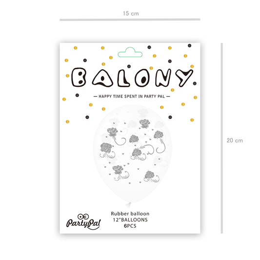 Balon biały w różyczki 12cali 6szt